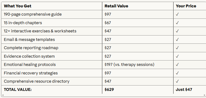 Plus, the emotional recovery strategies in this guide replace what would cost $500-1,000 in therapy sessions.